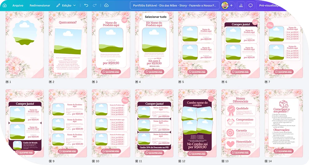 Moldes 100% editáveis no Canva — Personalize para cada cliente em minutos